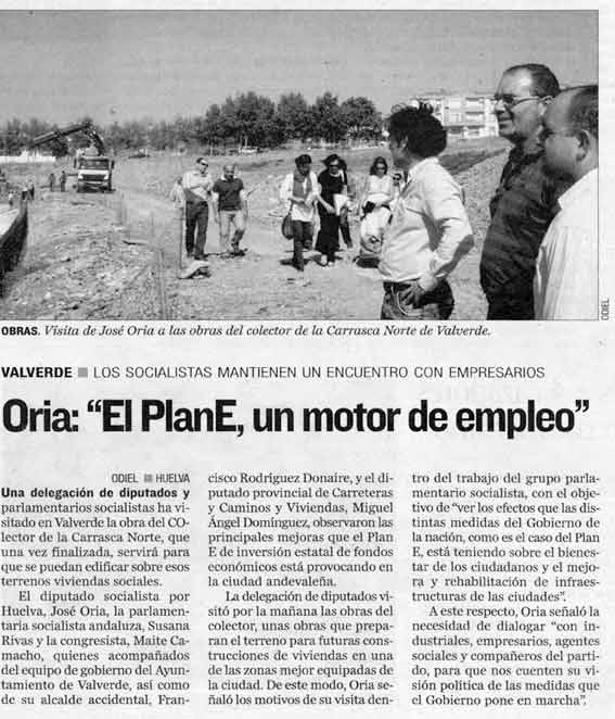 ODIEL INFORMACIÓN DE HUELVA - Día 29 de Septiembre de 2009, Visita de José Oria a las obras del colector de la Carrasca Norte de Valverde (ampliar imagen).